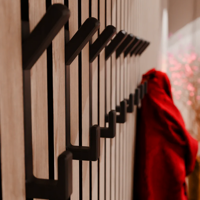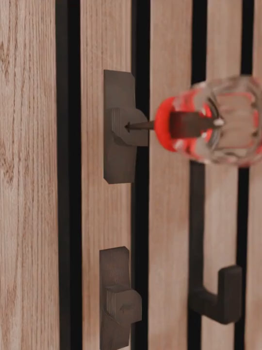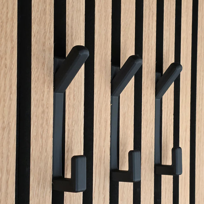 Ce crochet, méticuleusement conçu, est le complément idéal pour votre panneau acoustique Artmur, offrant un design personnalisé qui s'intègre parfaitement entre les lattes de nos panneaux.