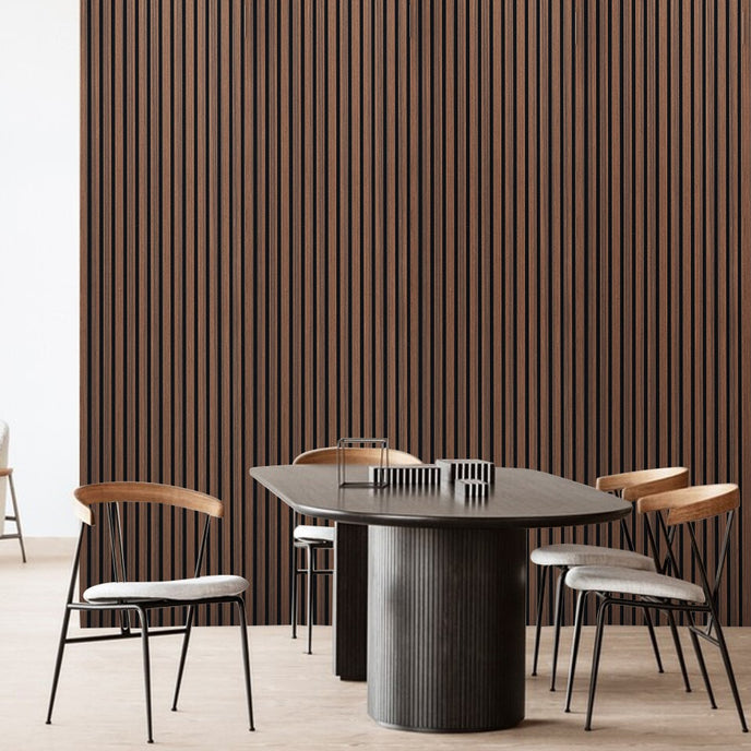 ARTMUR acoustic panel, dark walnut on recycled black felt, to improve acoustics and create a wall or ceiling with a modern look (indoor use only).