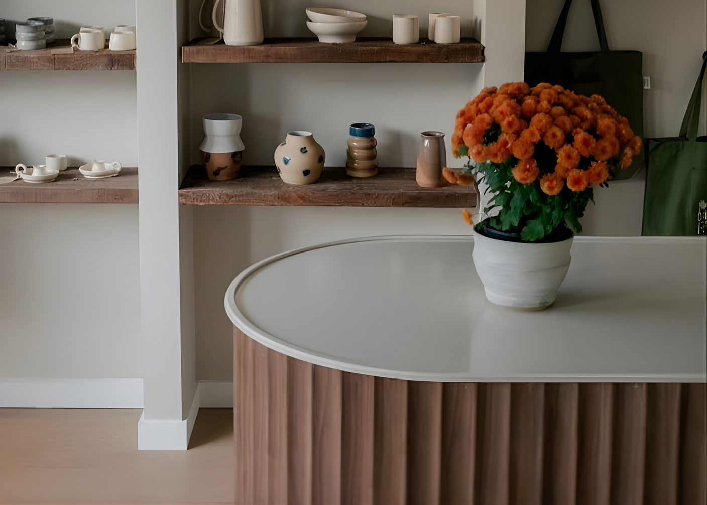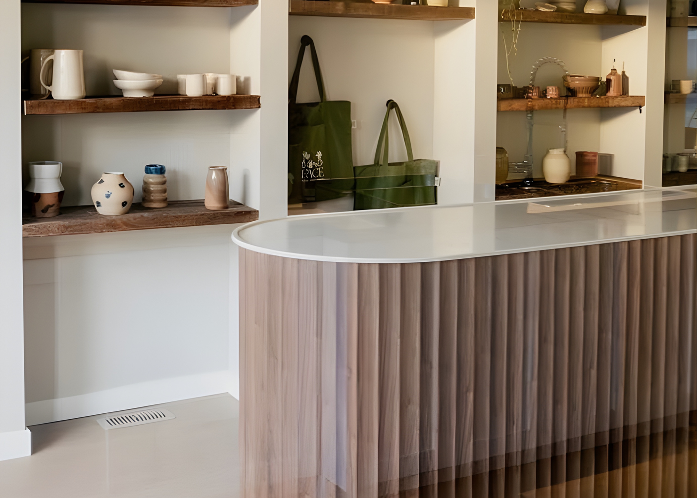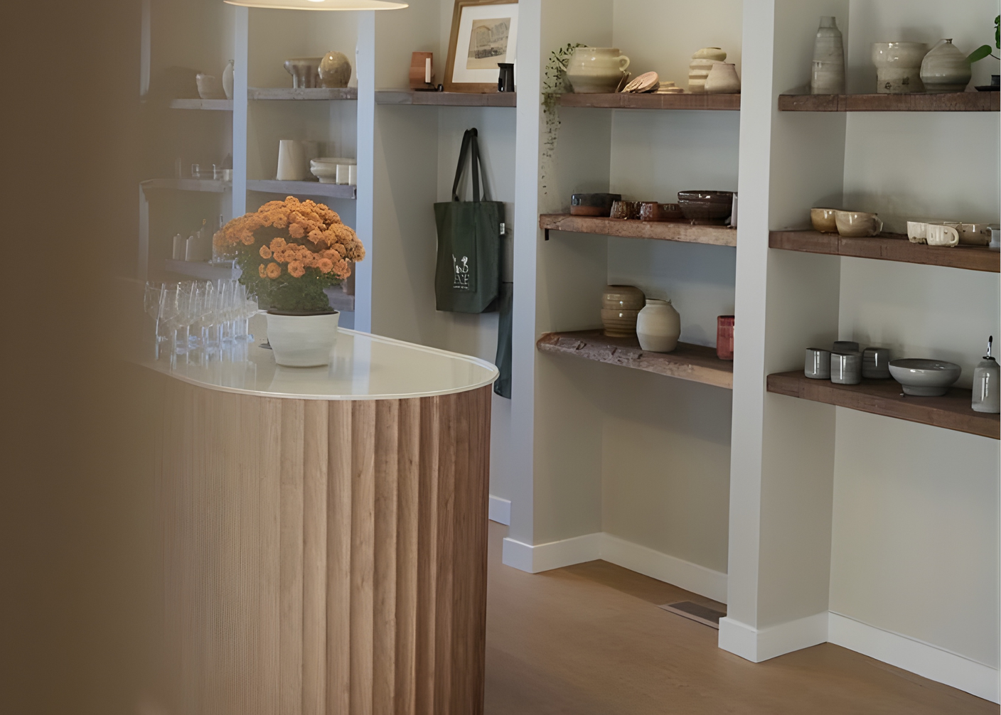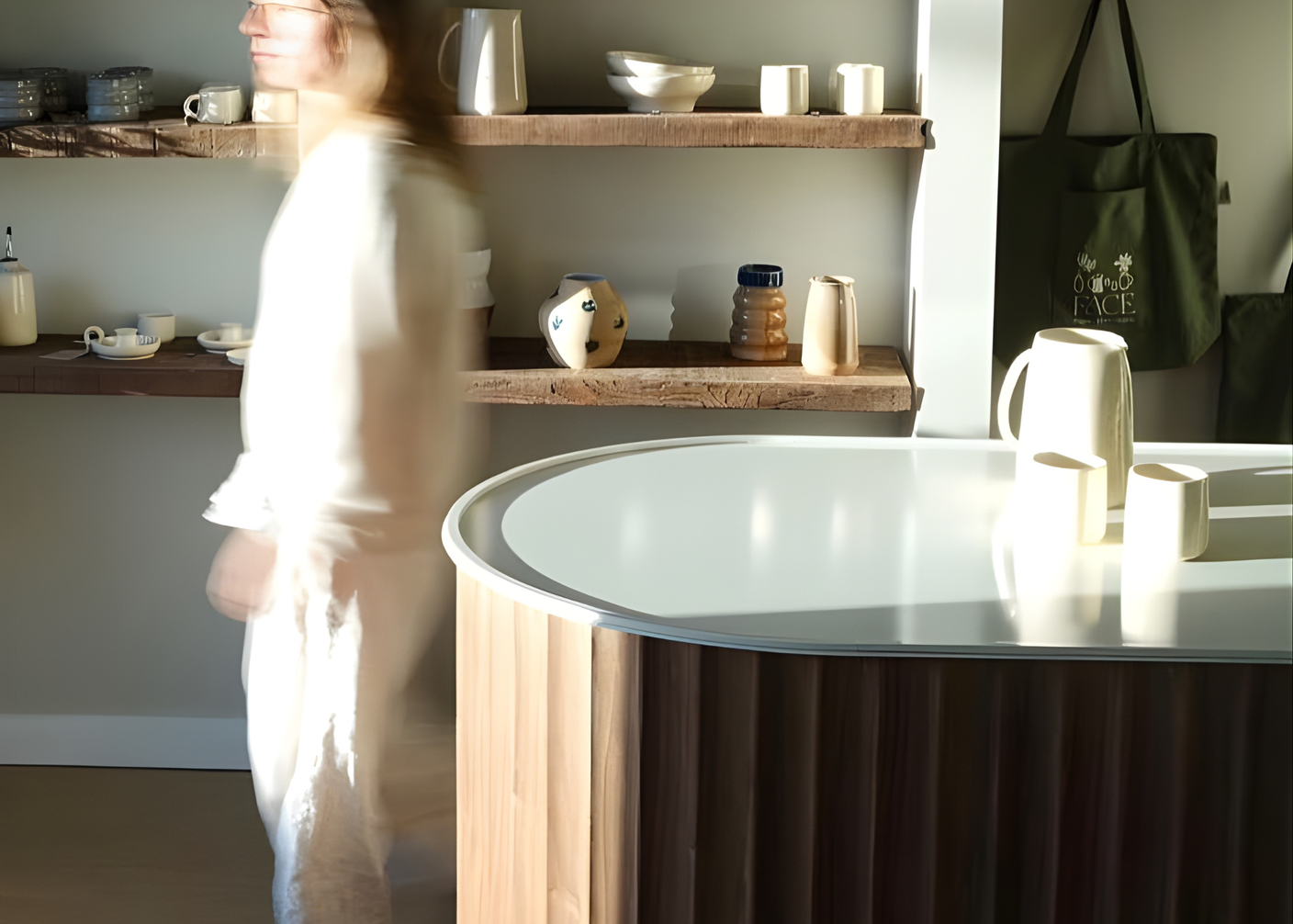 Les panneaux Artmur habillent ici avec élégance l’îlot central de la boutique Face pensée et façonnée par sa fondatrice Marie-Lou, dont chaque création rend hommage à la nature et à la communauté. 🌿