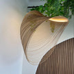 Finition : Filaments en bois naturel léger, courbés à la mai. Aspect semi-transparent pour maximiser la diffusion de lumière. Couleur : Bois clair doré