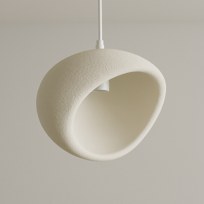 Suspension sculpturale inspirée du design japonais, aux courbes organiques et minimalistes, pour une lumière douce qui apaise l’espace.